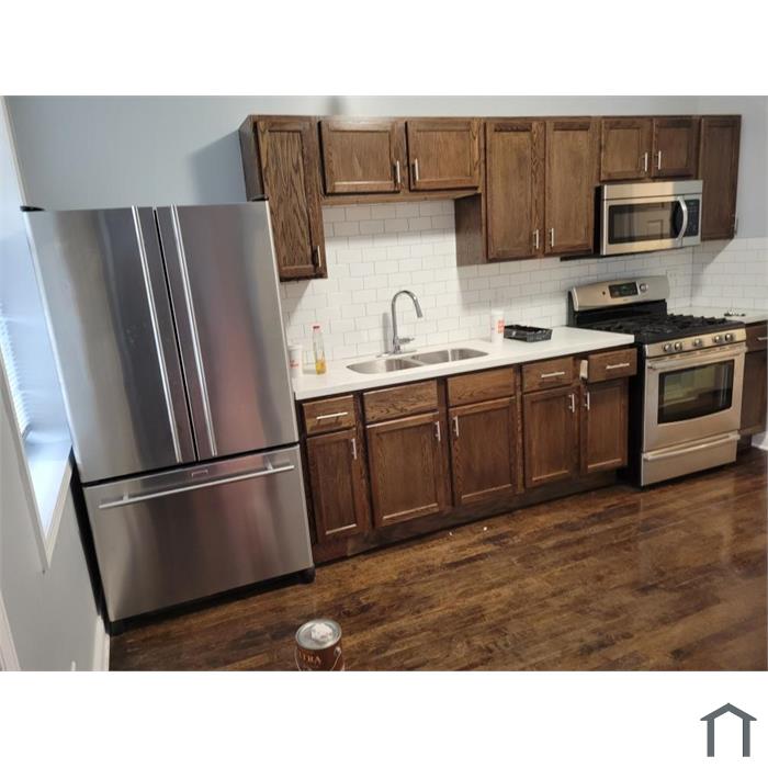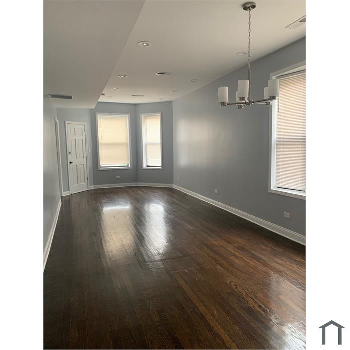 Apartment has 3 bedrooms, kitchen, family room and bathroom. Hardwood floors throughout apartment and porcelain ceramic in the bathroom. Kitchen has stainless steel appliances (Stove, refrigerator and microwave). Washer and dryer. Location is in close proximity to local shopping, public transportation and Interstates I-290 and I-55.