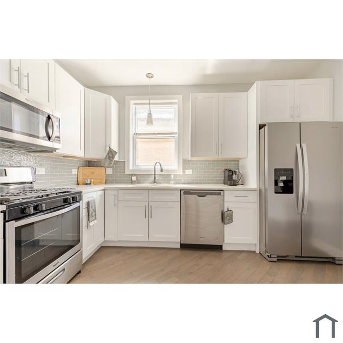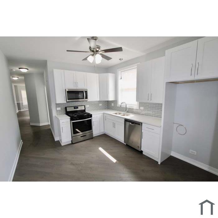 Nicely rehabbed 3 bedroom 1 bath apartment. All new fencing around property, new sidewalks, 2.5 car garage. Inside enjoy all new hardwood flooring, new doors,trims,paneling,chair rail,42in kitchen cabinets with quartz countertops,ss appliances, backsplash, premium light fixtures. Separate high efficiency forced air heating, separate electric. Make it your perfect family nest.