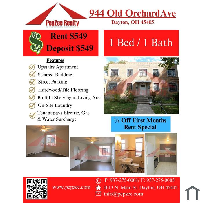 $549 Monthly Rent / $549 Security Deposit. Tenant Pays Gas, Electric Water Surcharge. Stove and Fridge Included w/ rent. One year lease. Application decisions not based on credit score. Features: Spacious Rooms, Laundry on Site, Ceiling Fans, Street Parking, Walking Distance of Local Shops and Eateries, Secure Building, Large back yard, Near the RTA bus line, 4 Minute walk to Five Oaks Park, Smokers and Pet Owner's are required to obtain renters insurance.