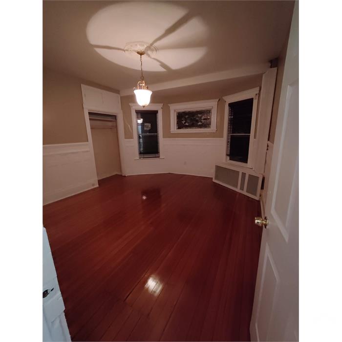 Large apartment located on the 2nd floor of a 3 family house. Hardwood and ceramic floors. Large rooms, Large eat-in kitchen, Good closet space. Front and rear porches, gated yard. Move-in = 1st month's rent plus security deposit. Utilities not included.