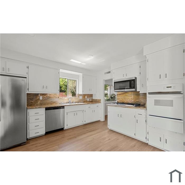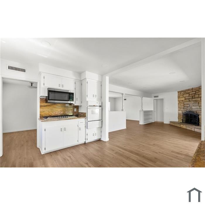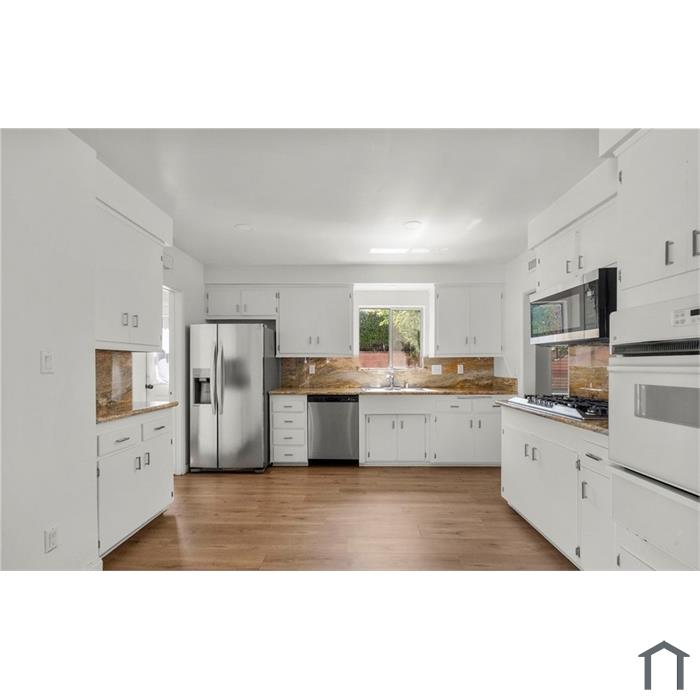 Beautifully remodeled 3BR home in Granada Hills featuring vinyl plank flooring, updated kitchen with granite counters and stainless appliances, spacious living and family rooms with stone fireplace, indoor laundry, and large closets. Enjoy a huge lot with patio, oversized driveway, and 2-car garage. Original hardwood floors in bedrooms. Conveniently located near schools, parks, shopping, dining, freeways, and public transit. ADU potential.