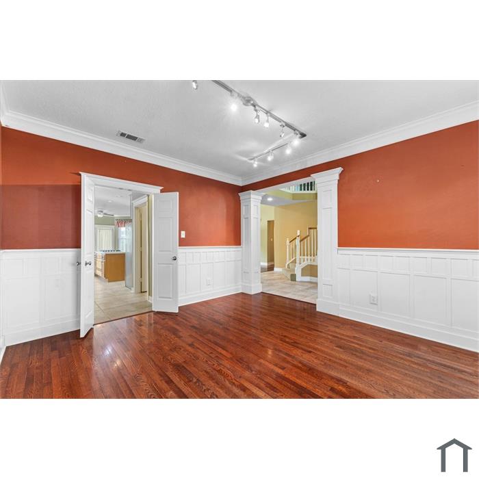 With two bedrooms downstairs and three upstairs, the layout is perfect for growing families, multi-generational living, and guests. The gourmet kitchen features Corian countertops, 42 maple cabinets, a pantry, and a large island ideal, for cooking and entertaining. Enjoy hardwood floors, custom built-ins, and high ceilings throughout. Upstairs, unwind in the spacious game room, or relax outside in the fully fenced backyard with a patio, perfect for gatherings or quiet evenings.