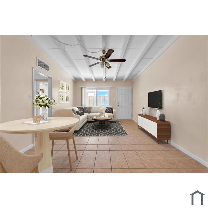 Charming 2-bedroom, 1-bath unit in a gated one-story duplex! Features spacious living and dining areas with ceramic tile flooring, a functional kitchen with white appliances and wood cabinets, and a classic tiled shower/tub combo. Includes one assigned parking space. Pet-friendly (upon approval) and conveniently located near shops, dining, and freeway access offering comfort, safety, and convenience in one perfect home!