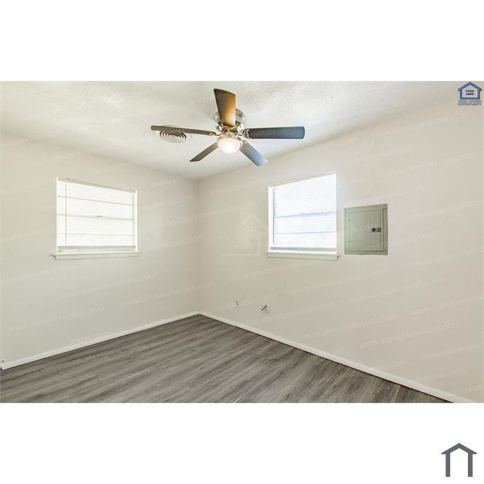 This lovely 4-bedroom 1.5-bath brick home features a unique and eye-catching design, with its brick exterior accented by charming details and accents. Experience the freedom of an open floor plan where the elegant kitchen with lovely white shaker cabinets transitions smoothly into the cozy living space with warm wooden flooring and creamy white colored walls, creating a harmonious ambiance. The bedrooms are cozy and come with ample closet space, ensuring yourpersonalbelongings stay organized and
