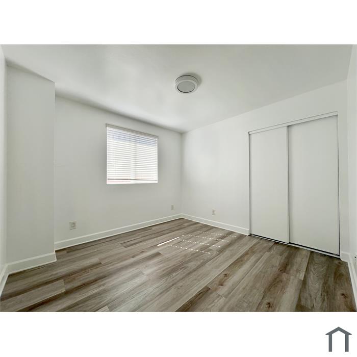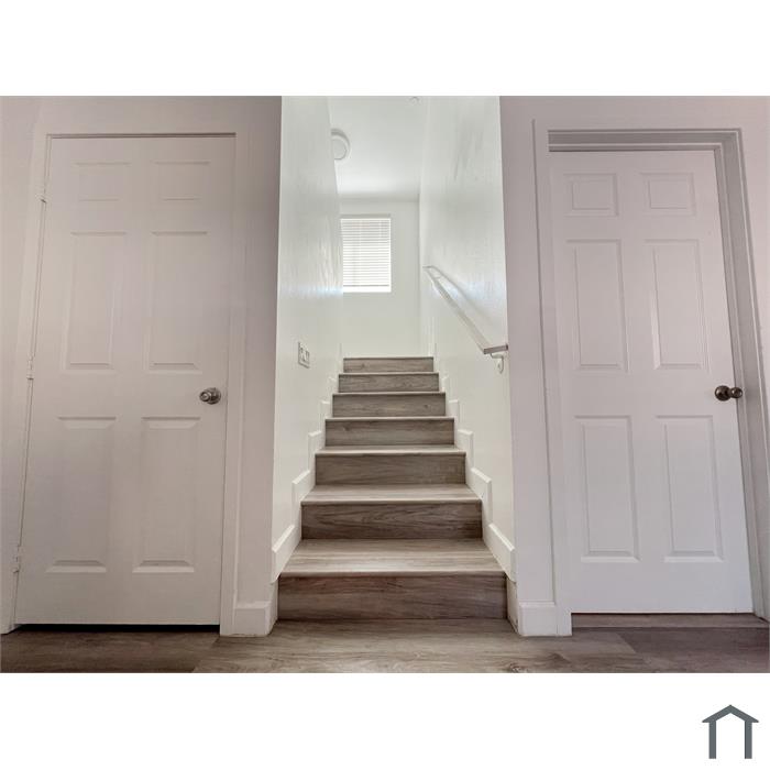 Two-story duplex back unit, freshly painted, new wood floor, new window blinds, washer/dryer hook up, and more.