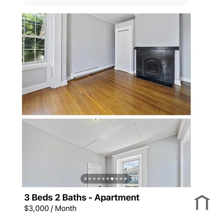 3 bedrooms apartment and 2 bath with off street parking