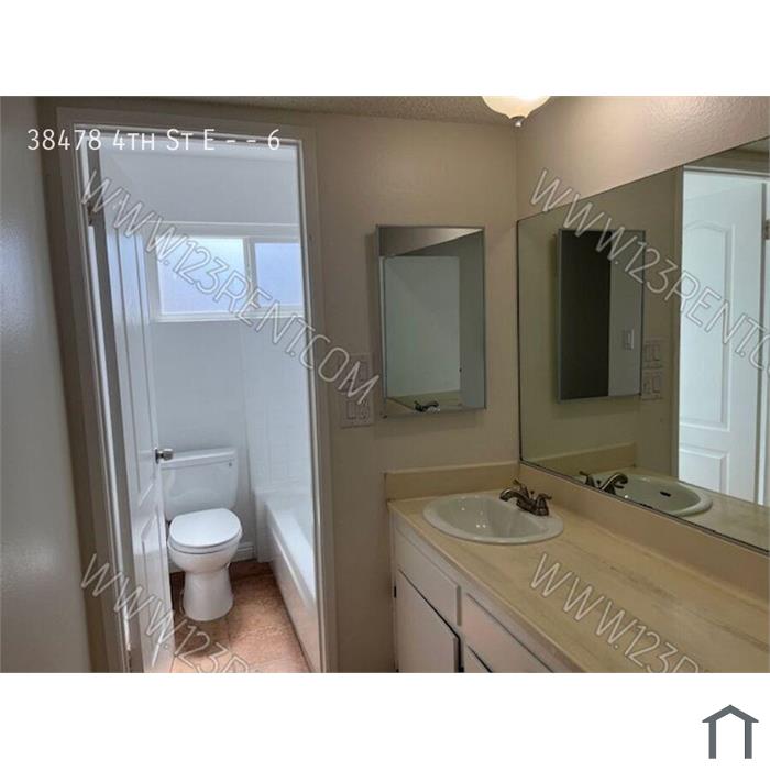 SCHEDULE A SHOWING ONLINE AT: showmojo.com/lah/09c8d53002 ---- Welcome to your new 2 bedroom, 2 bathroom apartment in East Palmdale, CA. This 2nd floor unit features a balcony with a view, perfect for enjoying your morning coffee or evening sunset. The apartment boasts new paint, central heat and air, and walk-in closet and pantries for ample storage space. The kitchen comes equipped with a new stove, dishwasher, painted cabinets, and new quartz countertops. The property is gated for added security and includes water and trash in the rent. With tile and laminate flooring, new windows, and a reglazed bathtub, this apartment is move-in ready. You'll also have access to on-site laundry facilities and a designated carport space. Don't miss out on this opportunity to call this beautifully updated apartment your new home. This building is easily accessible to the freeway, stores, banks, restaurants and to the train station. All qualified applicants welcome. You can fill out an application from our homepage www.123rent.com, OR download a printable application and submit to our office. Each adult has to fill out an application and pay a $40.00 application fee. Applications are processed in order of first come first serve. We will not collect the fee(s) until we get to your application & confirm that it is complete. Please make sure you submit your application with all the supporting documents. If you need further assistance or have questions with your application, please call the office at 866-768-2616. 1 Carport Space Balcony W/ View Central Heat And Air New Paint New Quartz Countertops New Stove New Windows On Site Laundry Painted Kitchen Cabinets Reglazed Bathtub Stove And Dishwasher Tile And Laminate Flooring Walk In Closets Water And Trash Water And Trash Are Included