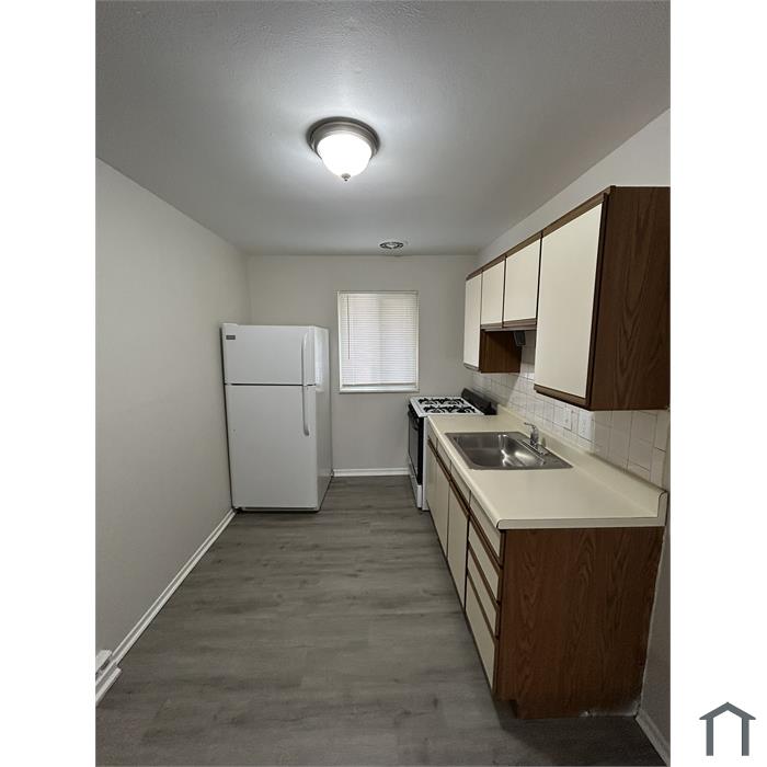 Ground-level 1-bedroom, 1-bath apartment with off-street parking and a red brick exterior. The open living room has LVP flooring, a walk-in closet, and a large window for natural light. The kitchen includes a gas stove, refrigerator, and cabinet space. The bedroom has LVP flooring, a ceiling fan, and access to the full bathroom. In-unit electric washer/dryer hookups included. Schedule a showing today. www.decapm.com