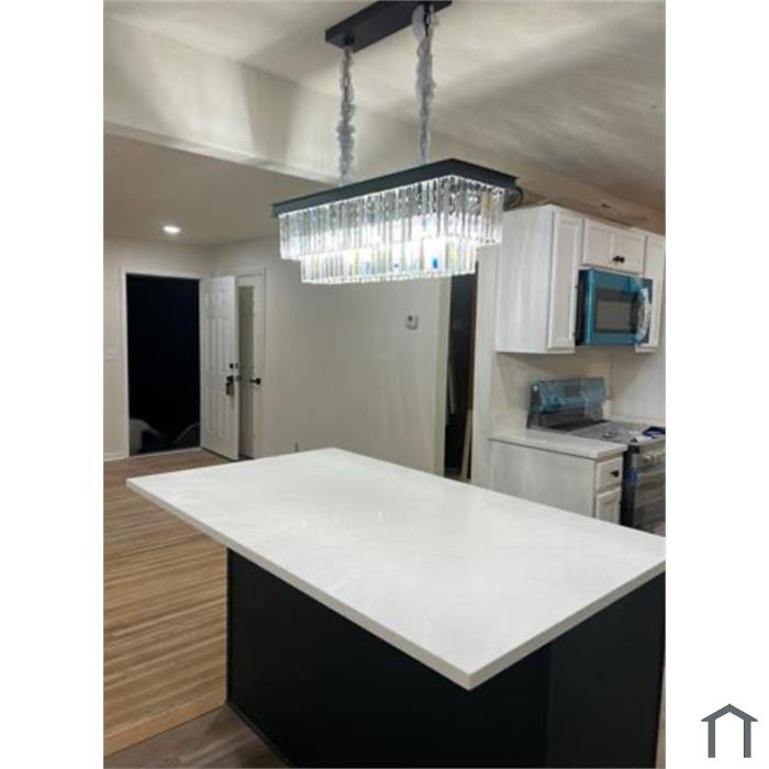 Step into this beautifully updated home featuring an open floor plan. Stunning hardwood floors flow throughout, complemented by elegant quartz countertops and a spacious kitchen island that opens to the living room. Light pours in, illuminating every corner. This spacious four-bedroom, two-bath home offers a master suite with stunning updates, including a luxurious rain shower. There’s plenty of room for your family