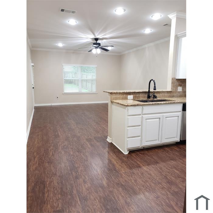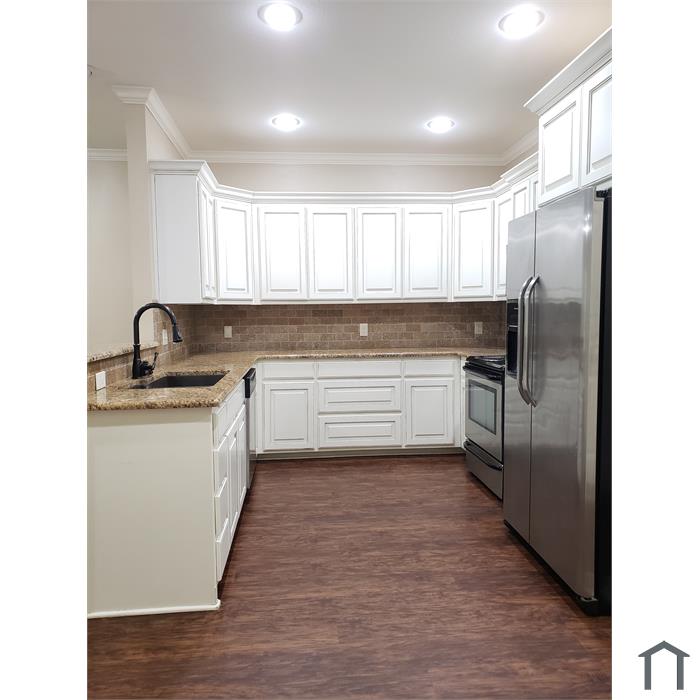 2 bed, 2 bath Duplex home for rent, with 1 car-garage (attached), living room, kitchen with granite countertops, dishwasher, laminate flooring throughout, all electric stainless-steel appliances, washer and dryer hookups, walk-in closets and large privacy fenced backyard. Landlord pays for water and lawn care. Plenty of storage cabinets. Master bedroom with private bath. Located in a quiet neighborhood with excellent school ratings, close to shopping, hospitals and restaurants. No Subleasing.