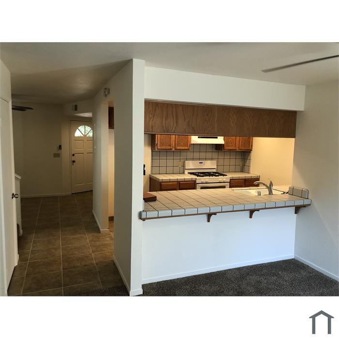 Looks great. Modern. Features:- 3 large bedrooms.- 2 full Bathrooms, with one in the Master Bedroom.- 1 Bath downstairs.- Living Room.- Dining Area.- Entry Area that is like a room or Den- Kitchen.- Wood cabinets in excellent condition.- Kitchen tile countertop in perfect condition (no chips or cracks).- Indoor laundry area with hook-ups.- 40-gallon water heater.- Large 2-car attached private garage with automatic roll-up door (no carport nonsense).- Patio / back yard.- Private driveway.